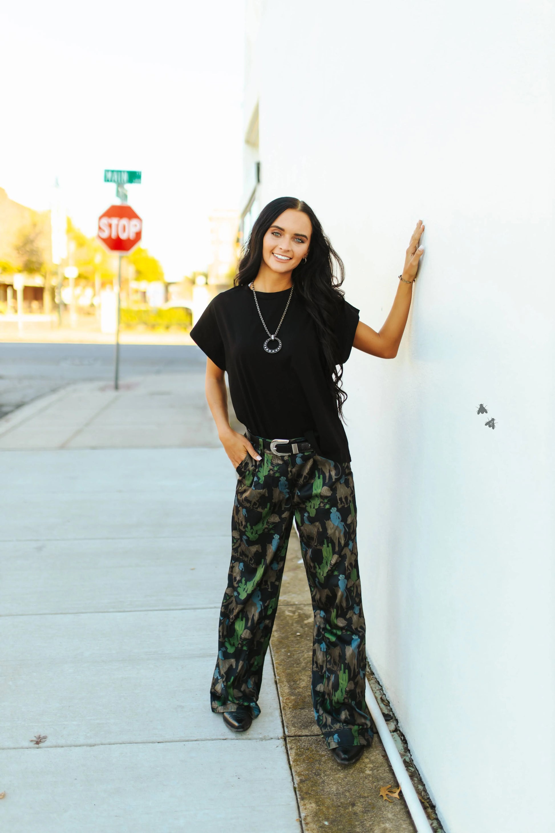 it’s SUPER easy to dress up or down with bold accessories or printed bottoms, like in this look—it just pulls everything together without trying too hard.
